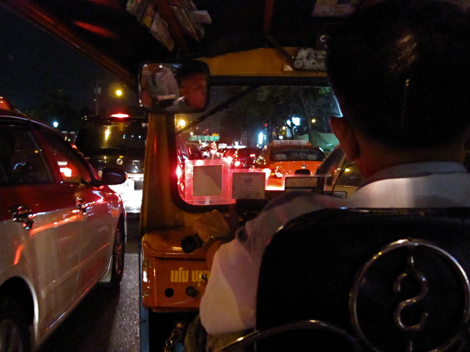 Bangkok Day 2. I love Thailand. We started out early and headed to Soi 38 where we hoped to dine on more street food in Sukhumvit East. The market was closed. So we jumped in a cab and headed for - Turned out to be ... okay. So we jumped in another cab for a quick ride to a local outdoor market which served as a cafeteria to the local offices. Score. Though this white man was bumped in line a few times he was able to order a beef stew. Then found some Thai Ice Team Ice Cream with a bottoming (rather than topping of corn). Next a fifteen minute lost stroll. Where upon we bumped into our Tuk Tuk guide for the next six hours. 20 Baht an hour... I fell in love with him too. He chauffeured us to lesser known holy haunts. Much quieter temples and shrines. Down alleys of fruition. And of course to a jewelry showcase for his government sponsored 5 Free liters of diesel fuel. After the cased and robbed the jewelry joint we somehow ended up having an early dinner in Chinatown.